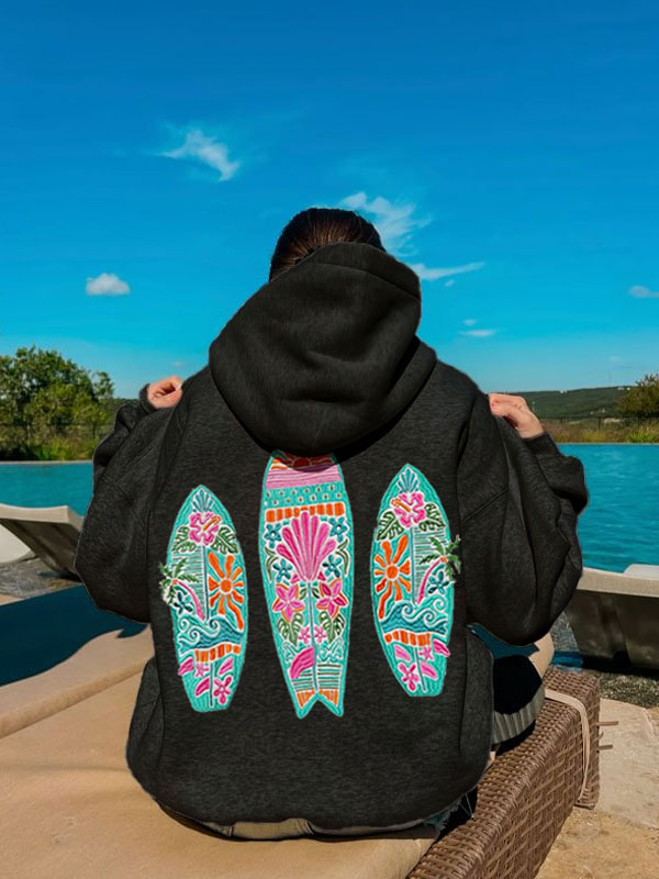 Round neck embroidered hoodie